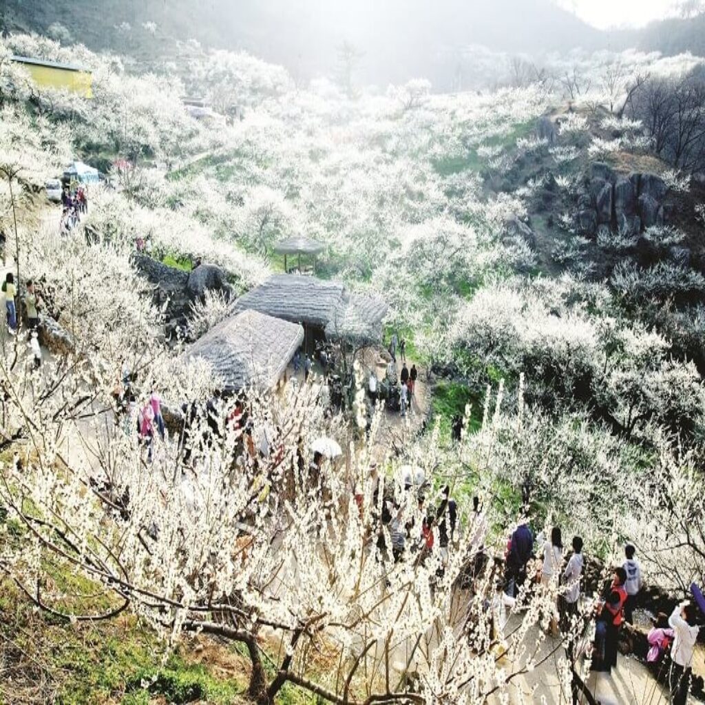 This is one of the most famous places to admire plum blossoms. The valley turns into a vast white landscape during bloom season.